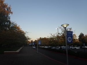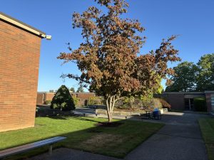 The sky is clear and blue following the school day on Friday, Sept. 26.