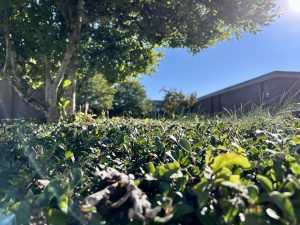 The sun shines through greenery in the academic courtyard on Tuesday, Oct. 14, and reflects a warm afternoon during a cold October.